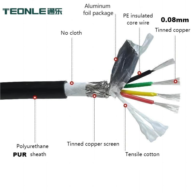 Polyurethane cable /PUR sheathed tow chain cable is designed for high bending and continuous motion. This cable is used as a control connection for a wide range of applications: towing chain systems, robotics, and mobile drive systems.