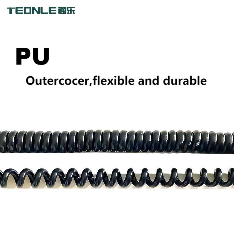 Spiral cable, spring cable: has very good elastic force, widely used in the field of industrial equipment, provides a convenient solution for handheld mobile equipment. Excellent in chemical, mechanical, thermal and optical properties.