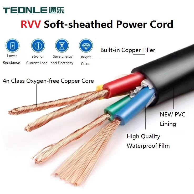 ● RVV multi-core flexible sheathed flexible cable in accordance with and in accordance with CCC safety specifications, suitable for power lines in various mechanical industries, and cable lines in the field of automatic production lines.